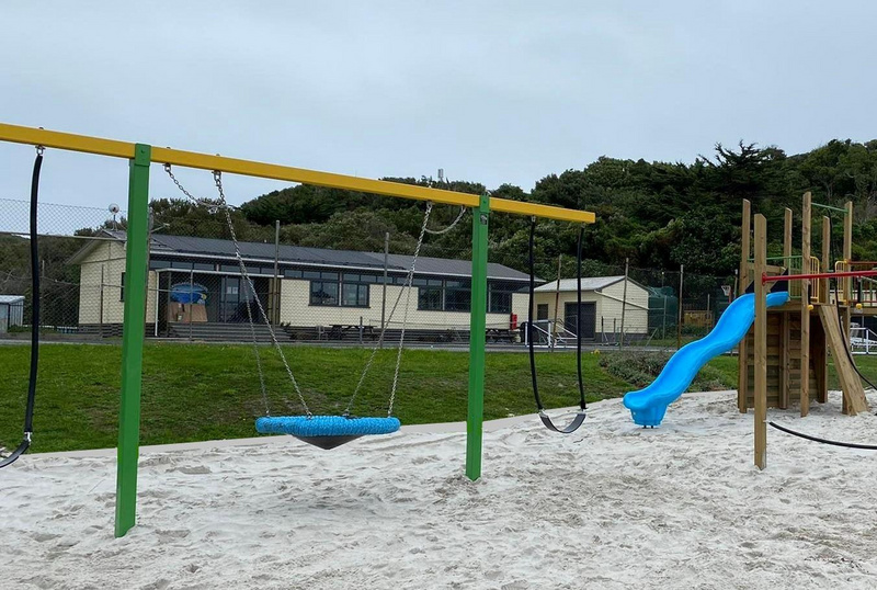 Brand new playground by Playgear, installed at Kaingaroa School on the Chatham Islands. This eight platform playground consists of many challenging activities designed to build confidence and develop upper body strength. Included in the playground area, is our ever popular Playgear Fusion 25 swing, which incorporates 2 rubber belt seats and a frisbee seat, encouraging group play and fun for all ages.